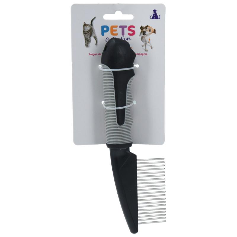 Ķemme dzīvniekiem ir praktisks un izturīgs kopšanas rīks, kas piemērots gan suņiem, gan kaķiem ar īsu, vidēju vai garu apmatojumu. Metāla zobi saudzīgi un efektīvi palīdz izķemmēt atmirušos matus, izņemt matu kamolus un netīrumus, vienlaikus uzlabojot dzīvnieka kažoka un ādas stāvokli. Ērtais ergonomiskais rokturis nodrošina drošu satvērienu, padarot kopšanu vienkāršu un patīkamu arī ilgākas lietošanas laikā. Regulāri izmantojot ķemmi, iespējams samazināt spalvu izkrišanu un palielināt mājdzīvnieka komfortu ikdienā. Izmērs 21 x 6 x 2 cm.