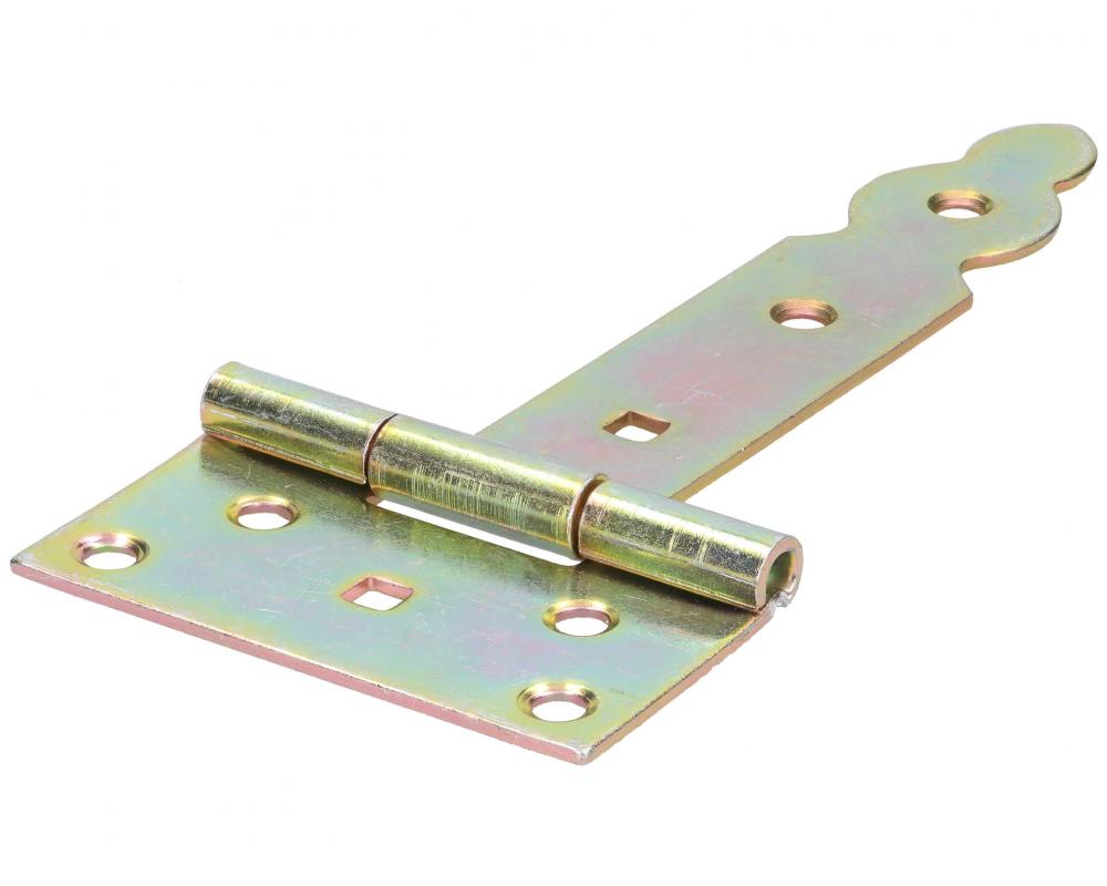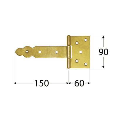 Spēcīga un izturīga dekoratīvā vārtu eņģe izmantošanai dažāda veida durvīs, vārtos un slēģos. Pārklāts ar galvaniskā cinka pārklājumu. Produkti, kas pārklāti ar šādu pārklājumu, ir paredzēti lietošanai sausās telpās ar iespēju periodiski pakļauties mitrumam (otrā lietošanas klase saskaņā ar PN-EN 1995-1-1: 2010). Izmērs 150 x 90 x 2.5 mm.