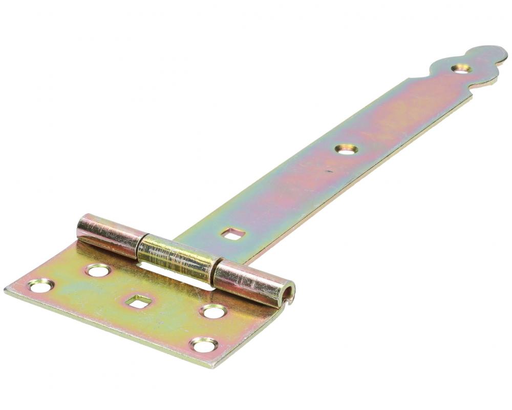 Spēcīga un izturīga dekoratīvā vārtu eņģe izmantošanai dažāda veida durvīs, vārtos un slēģos. Pārklāts ar galvaniskā cinka pārklājumu. Produkti, kas pārklāti ar šādu pārklājumu, ir paredzēti lietošanai sausās telpās ar iespēju periodiski pakļauties mitrumam (otrā lietošanas klase saskaņā ar PN-EN 1995-1-1: 2010). Izmērs 250 x 90 x 2.5 mm.