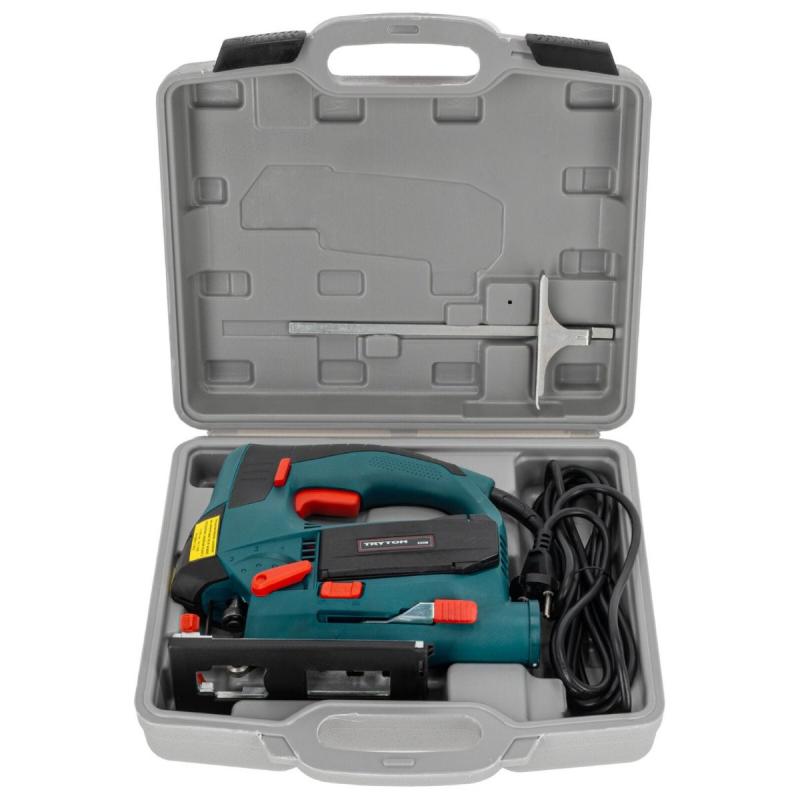 Figūrzāģis Tryton ar apgriešanas funkciju. Figūrzāģis tiek izmantots koka un saistīto materiālu, plastmasas, metāla, keramikas flīžu un gumijas griezumu un sagatavju izgatavošanai. Zāģēšana jāveic ar atbilstošu zāģa asmeni, kas pielāgots apstrādājamajam materiālam. Ierīce ir paredzēta taisnu un slīpu griezumu veikšanai līdz 45° leņķī. Paredzēts vidējas intensitātes sadzīves un rūpnieciskiem darbiem. Komplektā paralēlā vadotne, asmens un koferis uzglabāšanai.