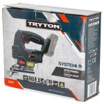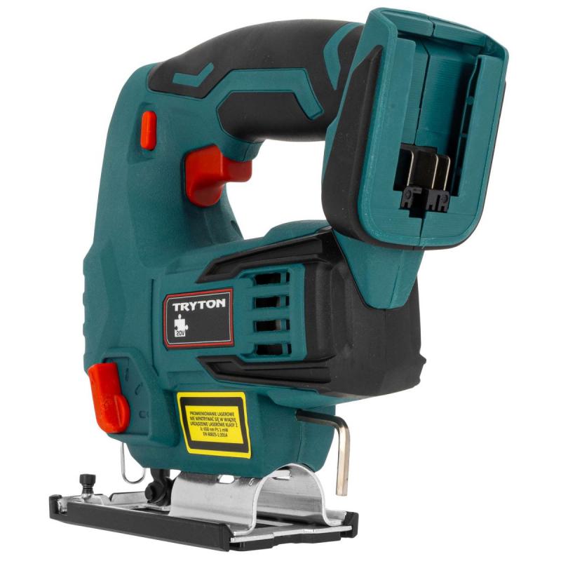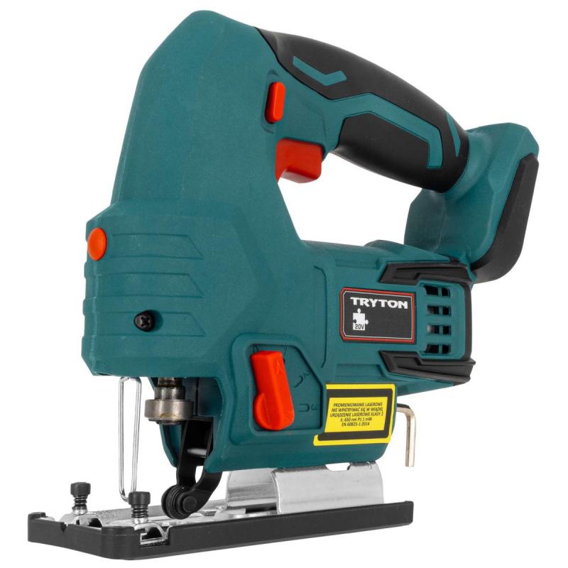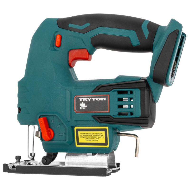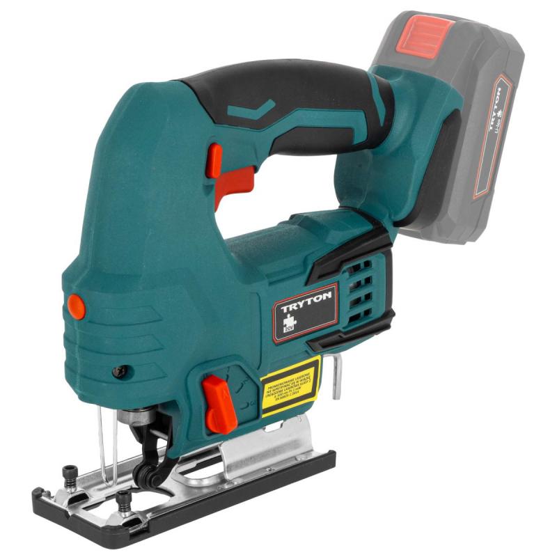 Akumulatora figūrzāģis Tryton TJR50. Viegli lietojams, precīzs, aprīkots ar lāzergriešanas līnijas indikatoru. Regulējamā pēda slīpiem griezumiem un ērts ātri nofiksējams rokturis zāģa asmeņiem. Ierīce paredzēta taisniem un slīpiem griezumiem 45° leņķī. Akumulatora figūrzāģis Tryton TJR50 no SYSTEM 20 V sērijas ir paredzēts kokam un atvasinātiem materiāliem, plastmasai, metālam, keramikas plāksnēm un gumiji. Zāģēšana jāveic ar atbilstošu zāģa asmeni, kas pielāgots apstrādājamajam materiālam. Figūrzāģis aprīkots ar elektronisku ātruma kontroles sistēmu un 4 pakāpju asmens padeves regulēšanu. Neslīdošs rokturis un ergonomisks dizains. Akumulators un lādētājs jāiegādājas atsevišķi.