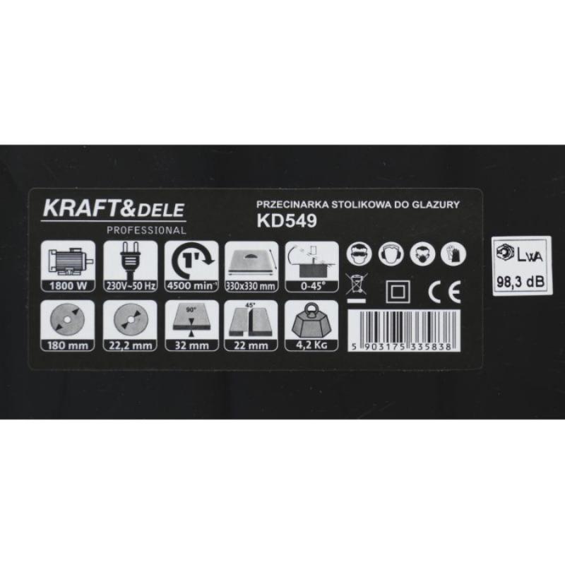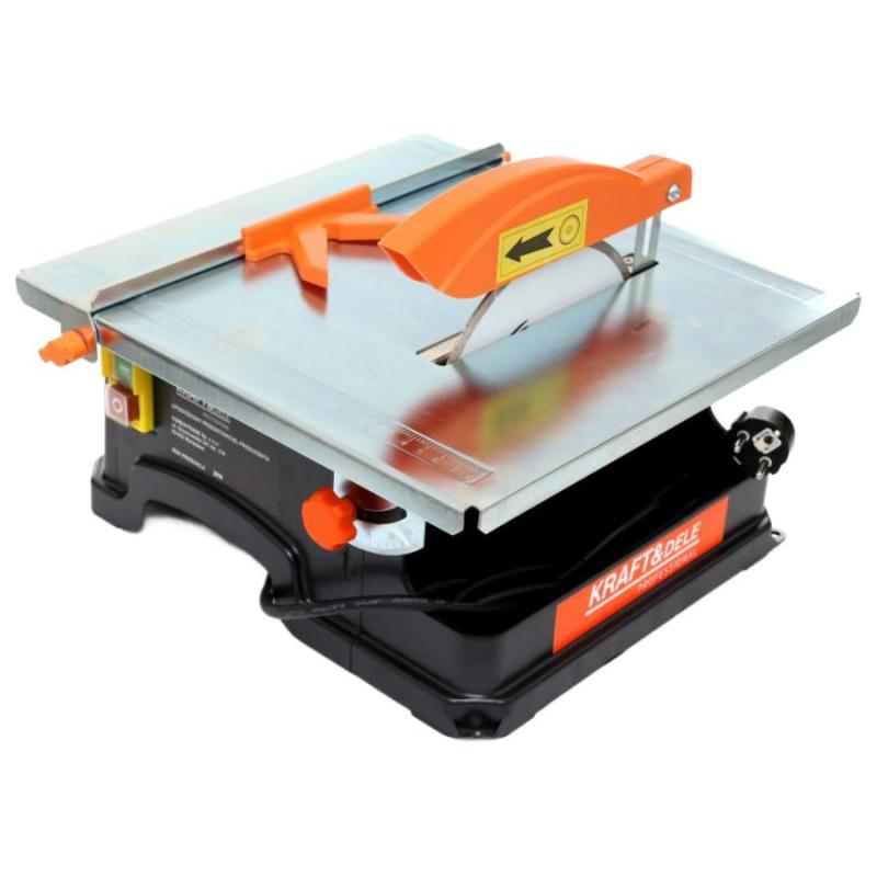 Kraft&Dele flīžu griezējs visu veidu flīžu precīzai griešanai. Aprīkots ar dimanta asmeni un ūdens tvertni, lai atdzesētu asmeni. Ierīcē izmantotā mitrā darba sistēma ar ūdeni ļauj strādāt gandrīz bez putekļiem. Pateicoties ierīcei, varat griezt flīzes taisni, leņķī (plakanā veidā), kā arī "dimantos". Galds izgatavots no cinkota tērauda. Ideāli piemērots visu veidu dēļiem un skaidu plātnēm. Pateicoties mitrās sistēmas izmantošanai, ūdens samazina asmens uzkaršanu, tāpēc varat griezt ilgāk, saglabājot optimālus darba parametrus. Tādā veidā iegūst tīru griezumu, kam ir liela nozīme griežot flīzes. Apakšējā daļā vākā ir caurums, caur kuru no ar ūdeni pildītas kivetes tiek samitrināts dimanta griešanas disks.Tehniskie dati: