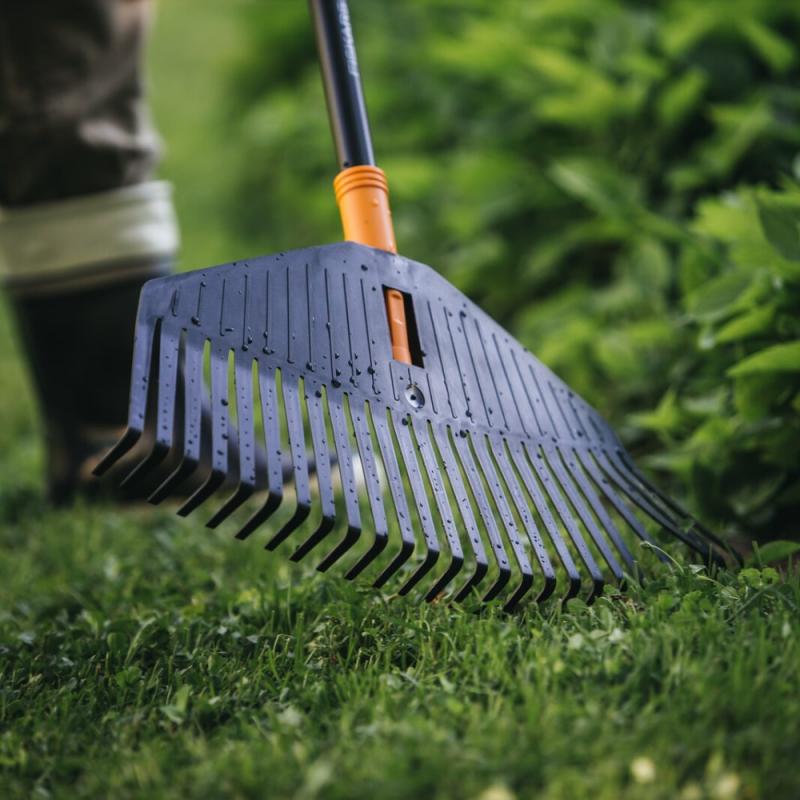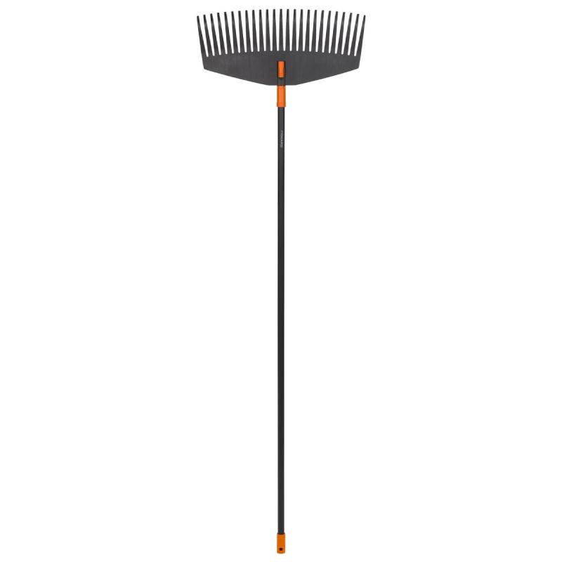 Fiskars Solid lielais lapu grābeklis ir lieliski piemērots lielu teritoriju kopšanai jebkurā gadalaikā. Ja vēlies atbrīvot lielu mauriņu no lapām, ir nepieciešams labs zāliena grābeklis. Fiskars Solid lielais lapu grābeklis ar elastīgiem plastmasas zariem ir lieliski piemērots pagalma uzkopšanai. Izturīgie un elastīgie zari, kas veidoti ar īpašu ģeometriju, aiztur zaru un lapu saķeršanos grābeklī. Šis dārza instruments nepievils dārza grābšanas darbos. Garums 1.75 m, darba platums 52 cm.