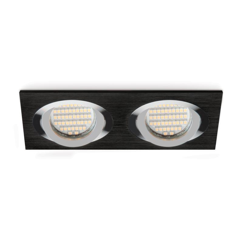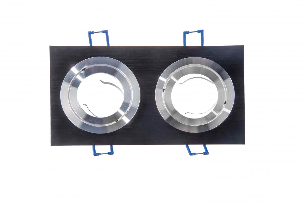 Iebūvējamā griestu lampa ar diviem regulējamiem gaismas punktiem un melnu metālisku rāmi nodrošina efektīvu apgaismojuma kontroli, ļaujot neatkarīgi virzīt katru gaismas staru. Alumīnija sakausējuma korpuss apvieno izturību ar mūsdienīgu dizainu, savukārt kontrastējošie hroma akcenti piešķir dinamisku vizuālo efektu. Šis modelis ir piemērots G5.3 vai GU10 spuldzēm, padarot to par daudzpusīgu risinājumu gan mājokļiem, gan sabiedriskām telpām.