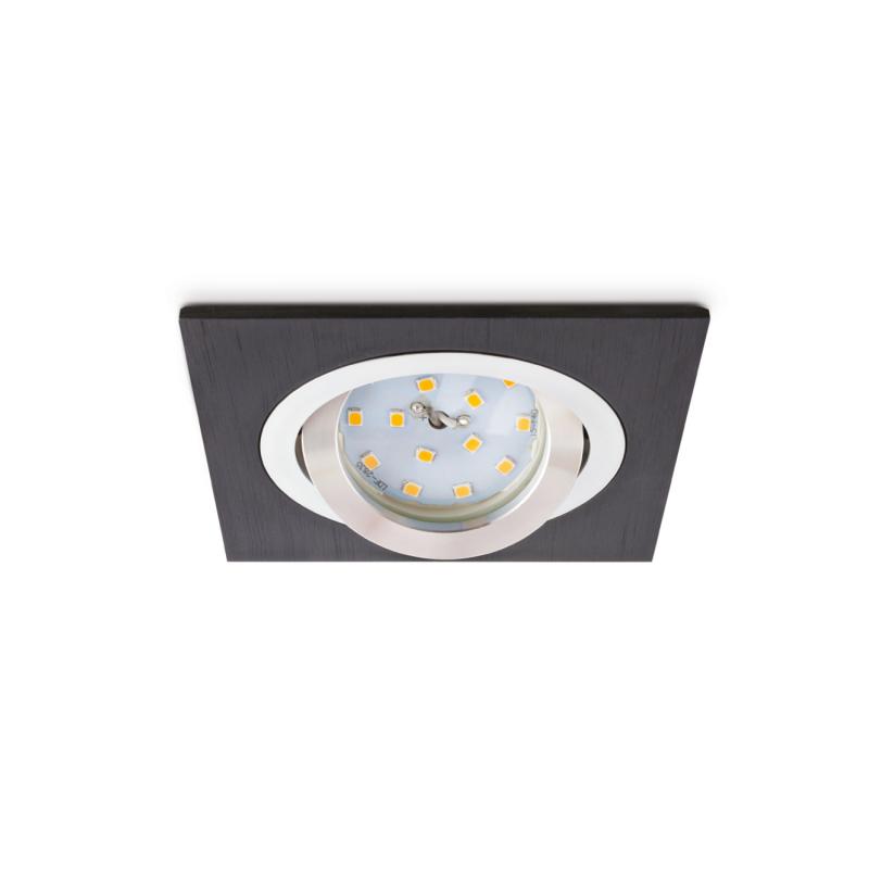 Kvadrātveida iebūvējamā griestu lampa ar melnu apdari un fiksētu spuldzes novietojumu nodrošina diskrētu un precīzu apgaismojuma risinājumu. Izgatavota no izturīga alumīnija sakausējuma, tā ir piemērota G5.3 vai GU10 spuldzēm, ļaujot izvēlēties piemērotāko apgaismojuma veidu atbilstoši telpas vajadzībām. Matētā virsma piešķir interjeram mūsdienīgu akcentu, vienlaikus nodrošinot kvalitatīvu un koncentrētu gaismas staru. Lampa lieliski iederas modernā, minimālisma vai industriālā vidē.