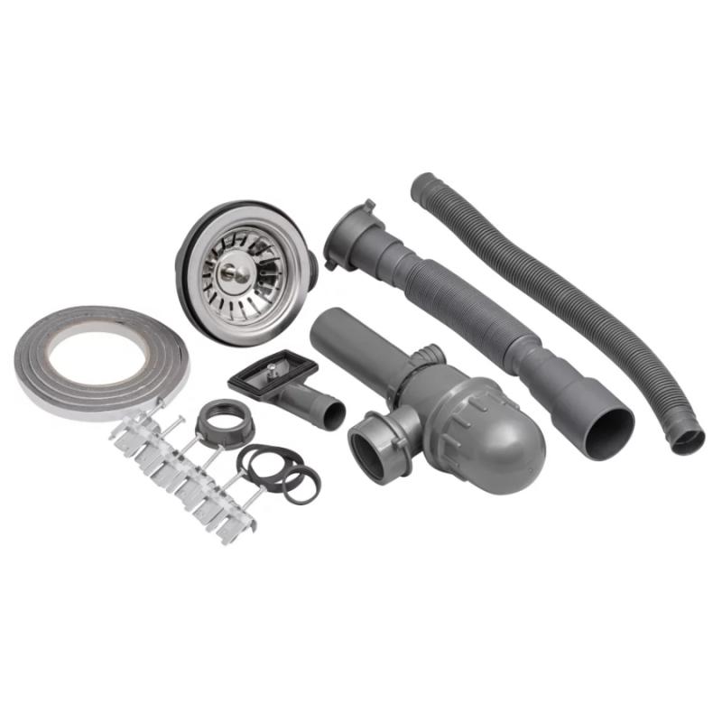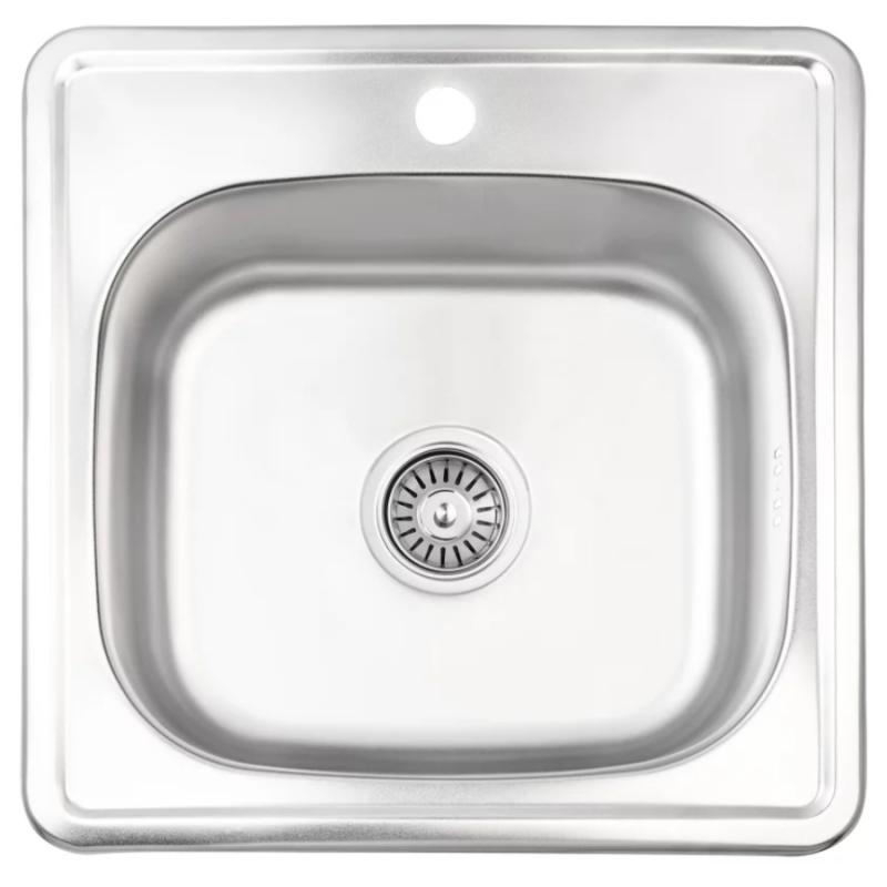 Izlietne virtuves AB 480X480X0.8MM, satīna, ar sifonu