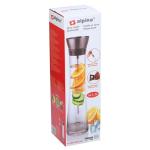 Alpina karafe ar iesmu ir elegants un funkcionāls trauks, kas lieliski piemērots gan ikdienas lietošanai, gan svinīgām reizēm. Karafes dizains ļauj pievienot augļus, dārzeņus vai garšaugus, piešķirot ūdenim vai dzirkstošajam dzērienam svaigu un aromātisku garšu. Tajā var kombinēt citronu ar piparmētru, gurķi ar baziliku vai dažādus augļus, radot unikālus un atspirdzinošus dzērienus. Pēc īsas atdzesēšanas ledusskapī dzēriens ir gatavs pasniegšanai, vienlaikus piešķirot galdam dekoratīvu un stilīgu akcentu. Tilpums 1.1 l.