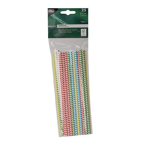 Kokteiļsalmiņi papīra krāsaini ZigZag 6mm 20cm, 25gb