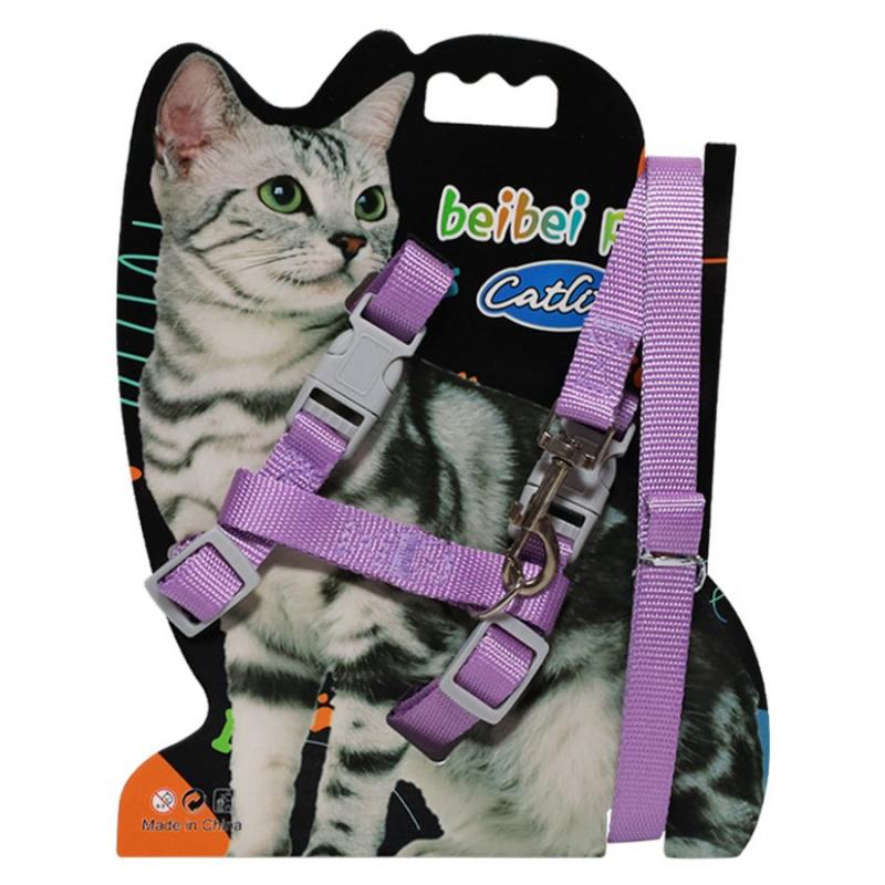 Krūšu siksna kaķiem ar pavadu 120cm, lillā