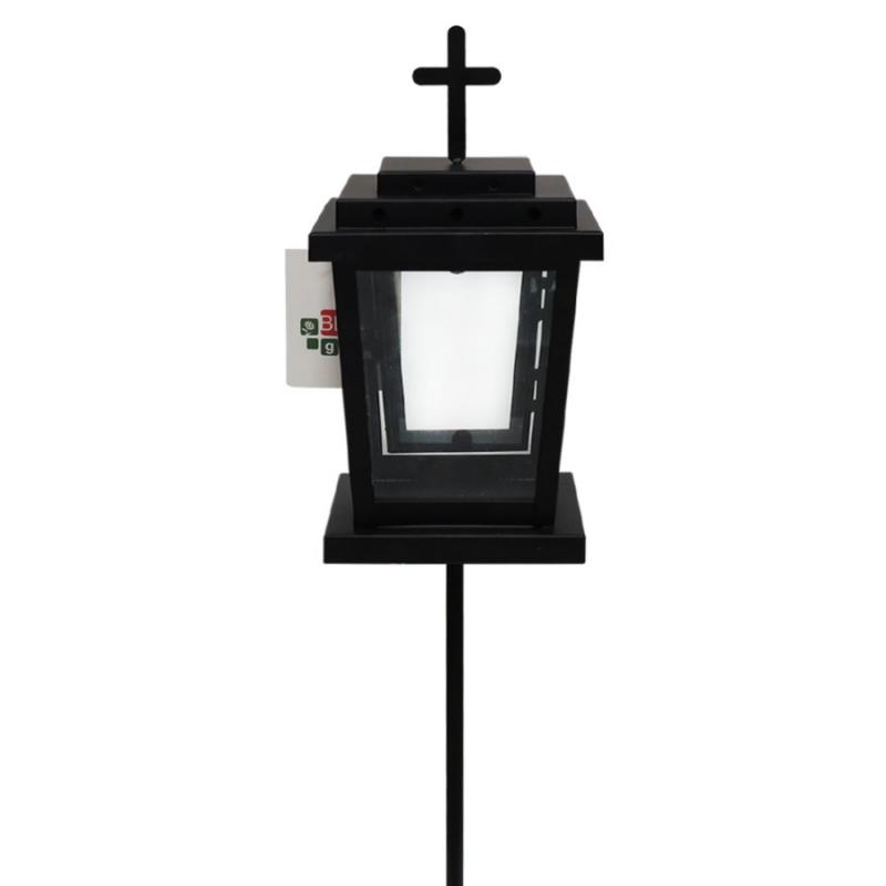 Besk metāla laterna ar krustu uz kāta ir elegants un izturīgs apgaismojuma un piemiņas aksesuārs kapsētai un dārza dekorēšanai. Klasiskā melnā krāsa un krusta dekors piešķir laternai cienīgu, svinīgu izskatu, kas lieliski iederas pie pieminekļiem un piemiņas vietām. Caurspīdīgās sienas nodrošina vienmērīgu gaismas izkliedi, radot mierīgu un siltu atmosfēru tumšajās vakara stundās. Metāla konstrukcija ir noturīga pret laikapstākļiem, savukārt kāts ļauj laternu ērti iestiprināt zemē un droši fiksēt izvēlētajā vietā. Laternas izmērs 11 x 11 x 19 cm, kāta garums 26 cm.
