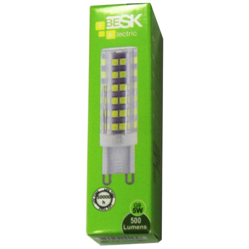 BESK G9 kapsulas formas LED spuldze ar G9 ligzdu izstaro silti baltu gaismu, kas piemērota maziem gaismekļiem, piemēram, dekoratīviem griestu vai sienas lampām. Tās gaismas plūsma ir 500 lūmeni un enerģijas patēriņš ir 5 W. Dzidrais pārklājums izceļ LED dizainu un nodrošina tiešu gaismas staru.