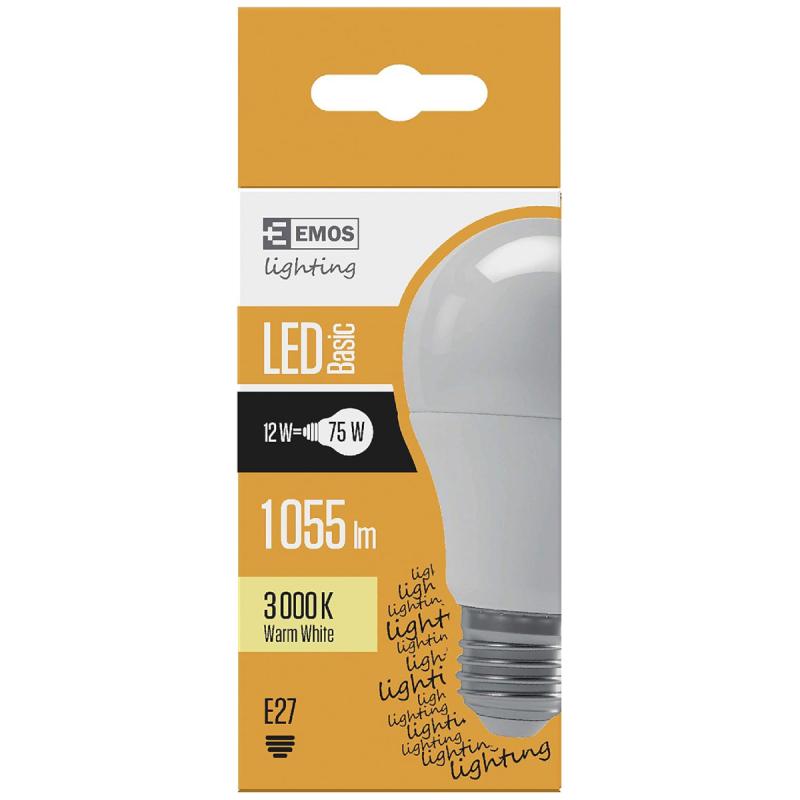 EMOS A60 bumbierveida formas LED spuldze ar E27 ligzdu izstaro silti neitrālu gaismu, kas piemērota ikdienas apgaismojumam dzīvojamās telpās. Tās gaismas plūsma ir 1055 lūmeni un enerģijas patēriņš ir 12 W. Tā sniedz spilgtumu, kas atbilst 75 W kvēlspuldzei. Matētais pārklājums palīdz vienmērīgi izkliedēt gaismu, samazinot atspīdumu. Spuldzes izmērs (D x A) 60 x 116 mm.