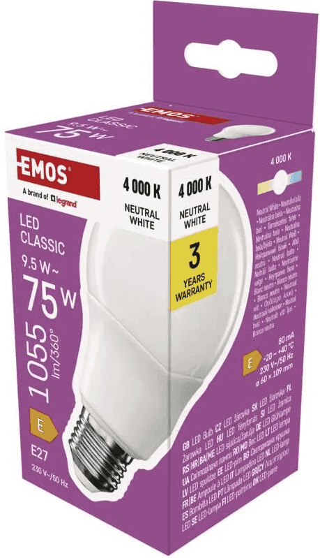 LED spuldze A60 9.5W 1055lm E27 NW Emos