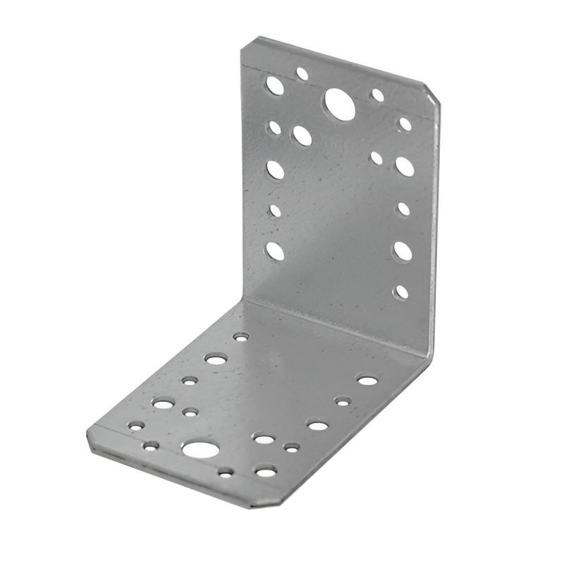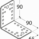 Plats leņķis kokmateriālu savienošanai ar kokmateriāliem, kokmateriālu savienošanai ar betonu vai kokmateriālu savienošanai ar tēraudu. Dažāda izmēra atveres palielina savienojuma daudzpusību un ļauj piestiprināt pie dažāda veida šarnīra savienotājiem. Izgatavots no cinkota tērauda DX51D + Z275, biezums 2.5mm. Piemerotie stiprinājumi - galdniecības enkurnaglas ø 4 mm, kokskrūves ø 6 mm, ø 10 mm, skrūves M10, M12, betona enkuri M6, M12. Nestspēja un noturība 17.8 kN. Izmērs 90 x 65 x 90 x 2.5 mm.