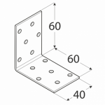 Plati leņķi ar daudzpusīgu perforāciju. Tajos ievietoto atveru skaits nodrošina, ka šie leņķi palīdz izveidot daudzus vienkāršus, kā arī sarežģītus savienojumus. Izgatavoti no cinkota tērauda DX51D + Z275, biezums 2 mm. Piemērotie stiprinājumi - galdniecības enkurnaglas ø 4 mm. Nestspēja un noturība 3.83 kN. Izmērs 60 x 40 x 60 x 2 mm.