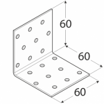 Plati leņķi ar daudzpusīgu perforāciju. Tajos ievietoto atveru skaits nodrošina, ka šie leņķi palīdz izveidot daudzus vienkāršus, kā arī sarežģītus savienojumus. Izgatavoti no cinkota tērauda DX51D + Z275, biezums 2 mm. Piemērotie stiprinājumi - galdniecības enkurnaglas ø 4 mm. Nestspēja un noturība 5.79 kN. Izmērs 60 x 60 x 60 x 2 mm.