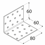 Plati leņķi ar daudzpusīgu perforāciju. Tajos ievietoto atveru skaits nodrošina, ka šie leņķi palīdz izveidot daudzus vienkāršus, kā arī sarežģītus savienojumus. Izgatavoti no cinkota tērauda DX51D + Z275, biezums 2 mm. Piemērotie stiprinājumi - galdniecības enkurnaglas ø 4 mm. Nestspēja un noturība 6.86 kN. Izmērs 60 x 80 x 60 x 2 mm.