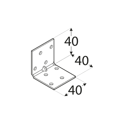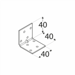 Pastiprināts leņķis ar daudzpusīgu perforāciju. Tajos ievietoto atveru skaits nodrošina, ka šie leņķi palīdz izveidot daudzus vienkāršus, kā arī sarežģītus savienojumus. Atbilstoši izstrādāti piespiedu caurduršanas punkti palielina to lieces izturību, kas ļauj tos izgatavot no plānāka materiāla, vienlaikus saglabājot līdzīgus stiprības parametrus. Izgatavoti no cinkota tērauda DX51D + Z275, biezums 1.5 mm. Piemērotie stiprinājumi - galdniecības enkurnaglas ø 4 mm. Nestspēja un noturība 6.2 kN. Izmērs 40 x 40 x 40 x 1.5 mm.