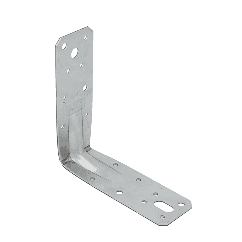 Pastiprināti leņķi ar ļoti augsta lieces izturība. Tiem ir plaša perforācija, kas ļauj tos izmantot gan standarta, gan nestandarta risinājumos. Izgatavoti no cinkota tērauda DX51D + Z275, biezums 2.5 mm. Piemērotie stiprinājumi - galdniecības enkurnaglas ø 4 mm, kokskrūves ø 6 mm, ø 10 mm, skrūves M10, M12, betona enkuri M10, M12. Nestspēja un noturība 18.2 kN. Izmērs 128.5 x 45 x 128.5 x 2.5 mm.