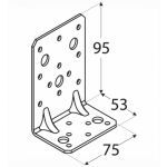 Eirokodeksa prasībām pielāgoti pastiprināti leņķi, kuriem ir minimālas atstarpes starp naglām. Tiem ir plaša perforācija, tāpēc tos var izmantot gan standarta, gan nestandarta risinājumos. Izgatavoti no cinkota tērauda DX51D + Z275, biezums 2.5 mm. Piemērotie stiprinājumi - galdniecības enkurnaglas ø 4 mm, kokskrūves ø 6 mm, ø 10 mm, skrūves M6, M10, betona enkuri M6, M10. Nestspēja un noturība 13.5 kN. Izmērs 53 x 75 x 95 x 2.5 mm.