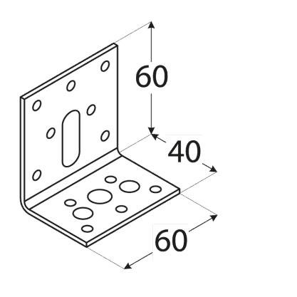 Regulējamajiem leņķiem ir ovālas formas atveres, lai atvieglotu nestandarta detaļu uzstādīšanu un novērstu spiedes spriegumu. Savienoto komponentu kustīgums novērš savienojuma spriegumu, kas saistīts ar deformācijām vai koksnes mitruma izmaiņām. Izgatavoti no cinkota tērauda, biezums 2.5 mm. Piemērotie stiprinājumi - galdniecības enkurnaglas ø 4 mm, kokskrūves ø 4 mm, ø 5 mm, ø 6 mm, ø 8 mm, ø 10 mm, ø 12 mm, skrūves M5, M6, M8, M10, M12, betona enkuri M5, M6, M8, M10, M12. Nestspēja un noturība 6.7 kN. Izmērs 40 x 60 x 60 x 2.5 mm.