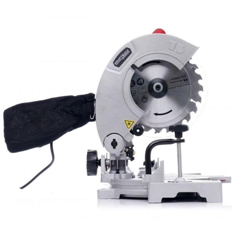 Kraft & Dele leņķzāģis piemērots mīkstas un cietas koksnes, kā arī analogu materiālu zāģēšanai. Piemērots taisniem un izliektiem griezumiem ar slīpuma leņķi līdz 45°. Leņķzāģi var pagriezt pa kreisi un pa labi ar grozāmo galdu. Leņķa precīzu regulēšanu var veikt izmantojot skalu. Leņķi var precīzi un ātri noregulēt no 0 ° līdz 45 ° ar fiksatoriem 15 °, 22.5 ° un 30 ° pozīcijās. Ierīce piemērota gan profesionālajām galdniecības darbnīcām, gan mājas darbnīcām. Zāģis ir aprīkots ar 2200 W 4500 apgr./min motoru, kas nozīmē ātru un precīzu darbu. Tam ir regulējams lāzers, kas precīzi norāda griezto malu, kas būtiski uzlabo darbu un padara griezumus precīzākus.