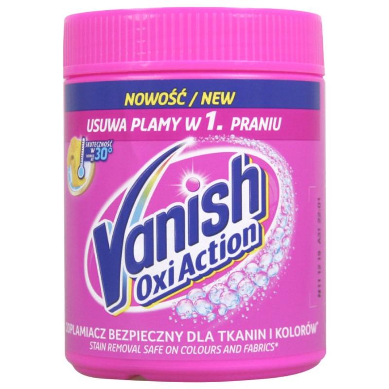 Līdzeklis Vanish Oxi Action Pink 470 g traipu tīrīšanai no apģērbiem un citiem audumiem. Produktu nav ieteicams lietot uz vilnas, zīda vai ādas, kā arī uz apstrādātām vai pārklātām virsmām, piemēram, uz koka, metāliem un tml. Pulveris palīdz iztīrīt jebkura izmēra un izcelsmes traipus no baltās un krāsainās veļas, nebojājot audumu un nebalinot krāsas. Līdzekli var lietot trīs veidos: kā papildinājumu veļas pulverim, mazgājot ierastajā veļas mašīnas režīmā; veļas mērcēšanai pirms mazgāšanas; konkrēto traipu apstrādei, uzklājot produktu uz traipa un atstājot ne ilgāk par 5 minūtēm.