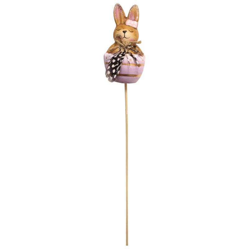 Mīlīgs un oriģināls Lieldienu dekors zaķītis olā uz kociņa. Dekorāciju var viegli iedurt ziedu oāzē, kūkās vai citās virsmās, lai radītu īpašu svētku noskaņu. Pateicoties koka kociņam, to var izmantot dažādos veidos – gan ziedu kompozīcijās, gan kā neatkarīgu dekorāciju. Šis ir lielisks veids, kā papildināt savu māju ar pavasarīgu noskaņu un izveidot īpašu atmosfēru Lieldienās. Dekora izmērs 6 x 6 x 9 cm.
