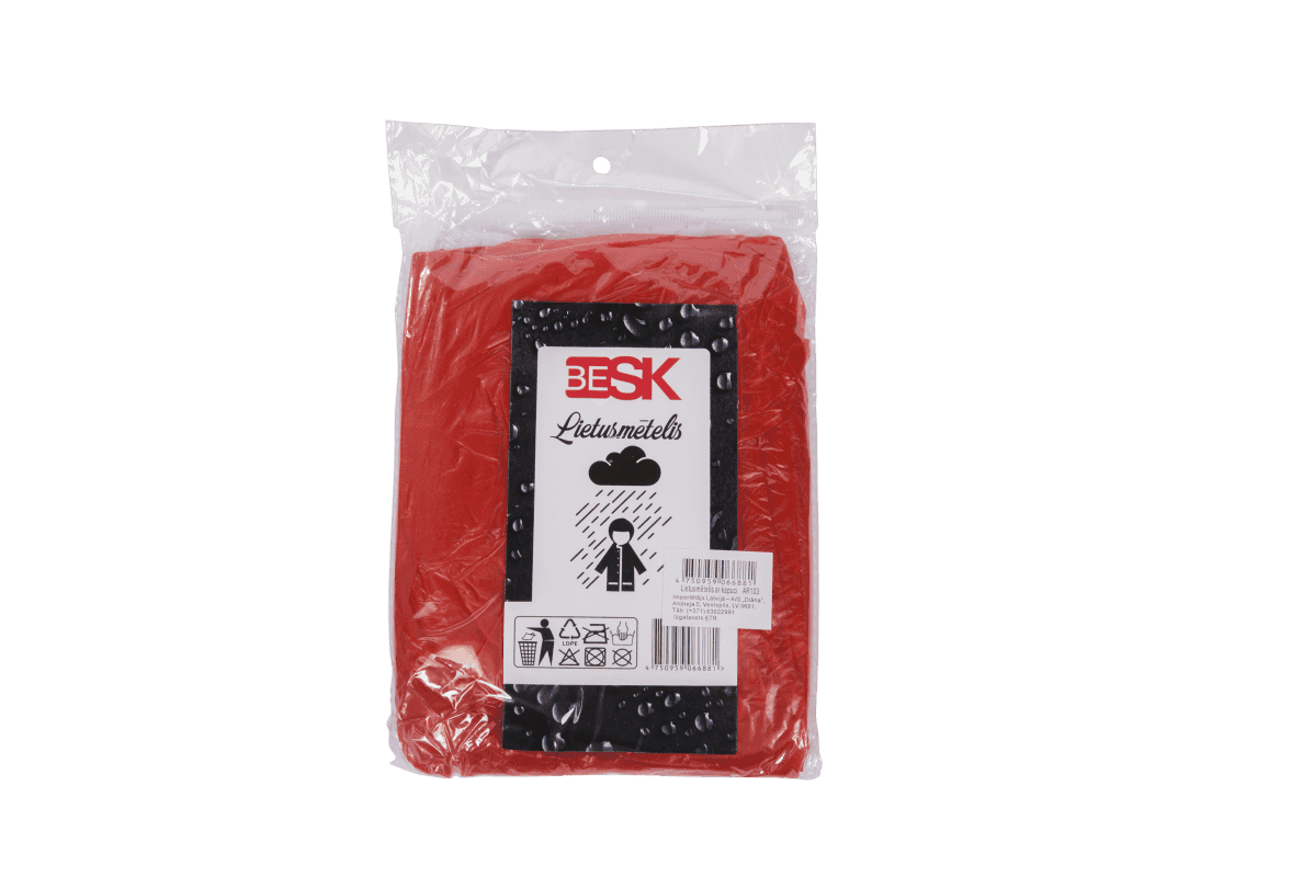 BESK polietilēna lietusmētelis ar kapuci ir praktisks risinājums aizsardzībai pret lietu pārgājienos, pasākumos vai ikdienas gaitās. Viegls materiāls un ērtā aizdare ar pogām nodrošina ātru uzvilkšanu un pielāgošanos dažādiem apģērbiem. Lietusmētelis ir kompakts un viegli salokāms, tāpēc to ir ērti ņemt līdzi somā.