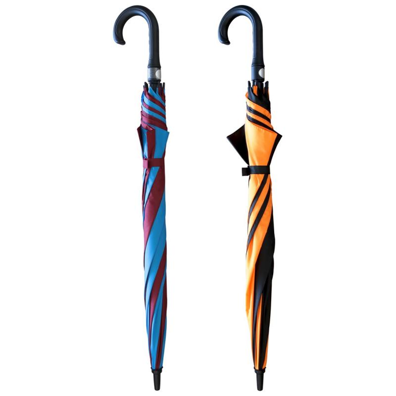 Lietussargs ar košu, modernu svītru dizainu ir uzticams risinājums gan lietainām, gan vējainām dienām. Izgatavots no izturīgiem materiāliem, tas nodrošina efektīvu aizsardzību pret mitrumu un ir piemērots ikdienas lietošanai dažādos laikapstākļos. Ērtais rokturis ar izliektu formu ļauj viegli nēsāt lietussargu rokā vai uz rokas.