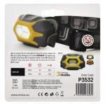 Uz galvas liekams ūdensizturīgs un triecienizturīgs plastmasas LED lukturis ar trīs apgaismojuma režīmiem. Apgaismojuma režīmi: 100% LED, 50% LED, sarkans mirgojošs LED. Maksimālā gaismas plūsma 125 lm, maksimālā gaismas stara distance 20 m, gaismas stara leņķis 120°. Jauda 3 W, darbojas ar 3 gb AAA baterijām, baterijas nav iekļautas komplektā.