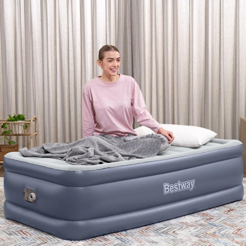 Bestway® TriTech™ piepūšamais matracis nodrošinās optimālu komfortu visas nakts garumā. Pateicoties kompaktajam izmēram un iebūvētajam sūknim, matracis ir gatavs lietošanai, kad vien nepieciešams. Pretmikrobu Ultra-Fresh™ virsma novērš smaku izraisošu baktēriju un pelējuma vairošanos uz virsmas. Matracis ir izgatavots no TriTech™ materiāla, kas nodrošina izturību. Integrētais elektriskais sūknis piepūš matraci 3 minūtēs. Ātrās atbrīvošanas vārsts ļauj viegli demontēt to nākamajā rītā.