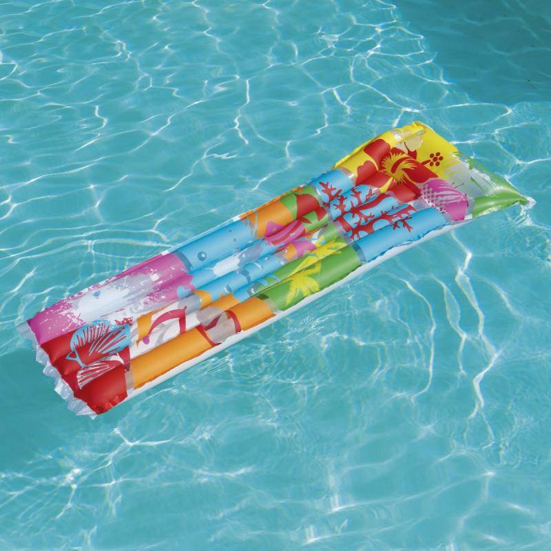 Bestway® Fashion piepūšamais matracis baseinam pieejams 3 spilgtos dizainos. Tam ir 2 kameru spilvena konstrukcija, kas nodrošina papildu komfortu un atbalstu.