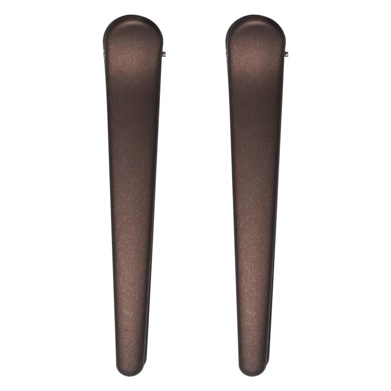 Izturīgas un modernas sprādzes matu fiksācijai gan ikdienā, gan svētkos. Komplektā ietilpst divas matu sprādzes ar matētu virsmu, kas nodrošina drošu fiksāciju un komfortu visas dienas garumā. Sprādzes ir izgatavotas no kvalitatīvas plastmasas, piemērotas vidēji gariem un gariem matiem.