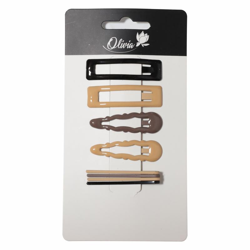 Praktisks matu sprādžu komplekts, kas piemērots gan ikdienas, gan svētku frizūru veidošanai. Komplektā ietilpst astoņas dažādu formu un krāsu sprādzes, kas izgatavotas no kvalitatīvas metāla un plastmasas kombinācijas. Sprādzes ir viegli lietojamas, droši fiksē matus un nebojā to struktūru, padarot tās piemērotas dažāda garuma un biezuma matiem.
