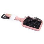Liela, ērta un efektīva suka, kas lieliski piemērota gariem un bieziem matiem. Plata suka ar elastīgiem sariņiem un noapaļotiem galiem palīdz saudzīgi atšķetināt matus un samazināt matu lūšanu, kā arī nodrošina patīkamu galvas ādas masāžu. Ergonomisks rokturis ar zeltainu akcentu nodrošina stabilu un ērtu satvērienu, padarot suku piemērotu ikdienas lietošanai mājās. Suka izgatavota no izturīgas plastmasas, garums 25 cm.