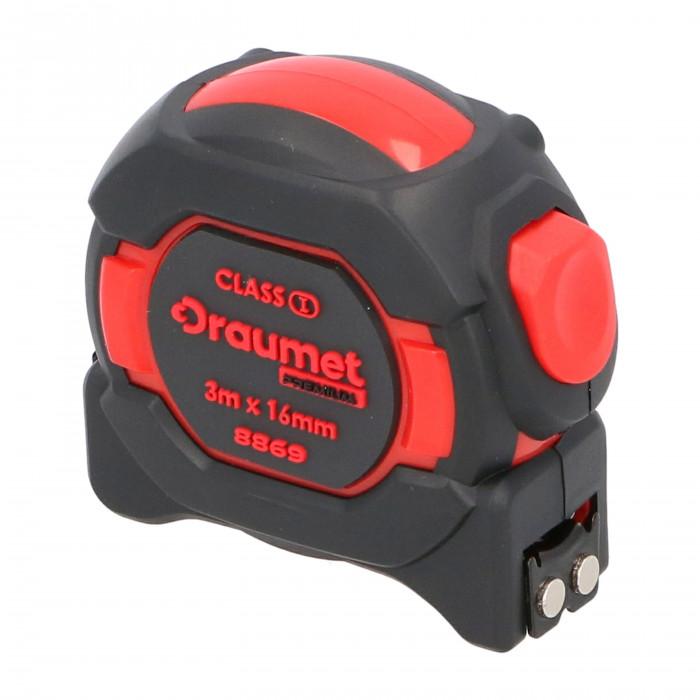 Premium mērlente ar automātiskās bloķēšanas sistēmu. Triecienizturīgs korpuss no ABS plastmasas un gumijas. Ergonomiska forma ērtam darbam. Korpuss ar jostas klipsi un āķa lenti. Lente no abām pusēm pārklāta ar neilonu, kas nodrošina aizsardzību pret noberšanos, netīrumiem, putekļiem un ūdeni. Precizitātes klase 1 - divreiz precīzāks mērījums nekā 2.klases precizitātes lentēm. Maksimālā kļūda 1mm /10m. CE un MID sertifikāti. Lentes garums 3 m, platums 16 mm.