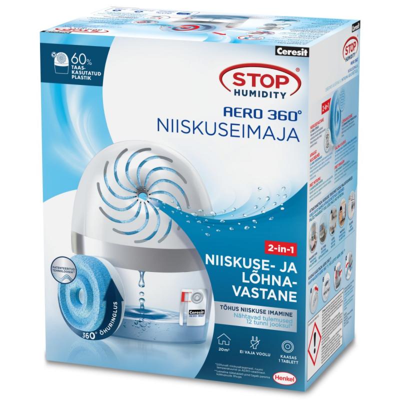Aero 360º ir sasniegums mitruma pārvaldībā. Henkel jaunā sistēma optimizē gaisa cirkulāciju 360º. Aero 360° sistēma ir balstīta uz fizikas principiem – jo lielāka ir pildījuma tabletes saskares virsma ar gaisu, jo labāk tā uzsūc mitrumu. Novatoriskā viļņota virsma un atvērums vidū palielina tabletes saskares virsmu ar gaisu, lai uzlabotu mitruma absorbētāja efektivitāti.