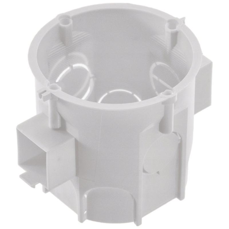 1 - vietīga plastmasas montāžas kārba ar vietu skrūvēm (skrūves nav iekļautas komplektā) betonam. Ārējais diametrs 63 mm, ārējais dziļums 64 mm, iekšējais dziļums 62 mm, platums 84 mm, attālums starp skrūvēm 60 mm. Paredzēta kabeļiem un caurulēm ar diametru 20 mm. Aizsardzības pakāpe IP30. Temperatūras izturība 650°C. Ievadu skaits 10 ar iespēju ievadi veikt arī no aizmugures. Krāsa balta.