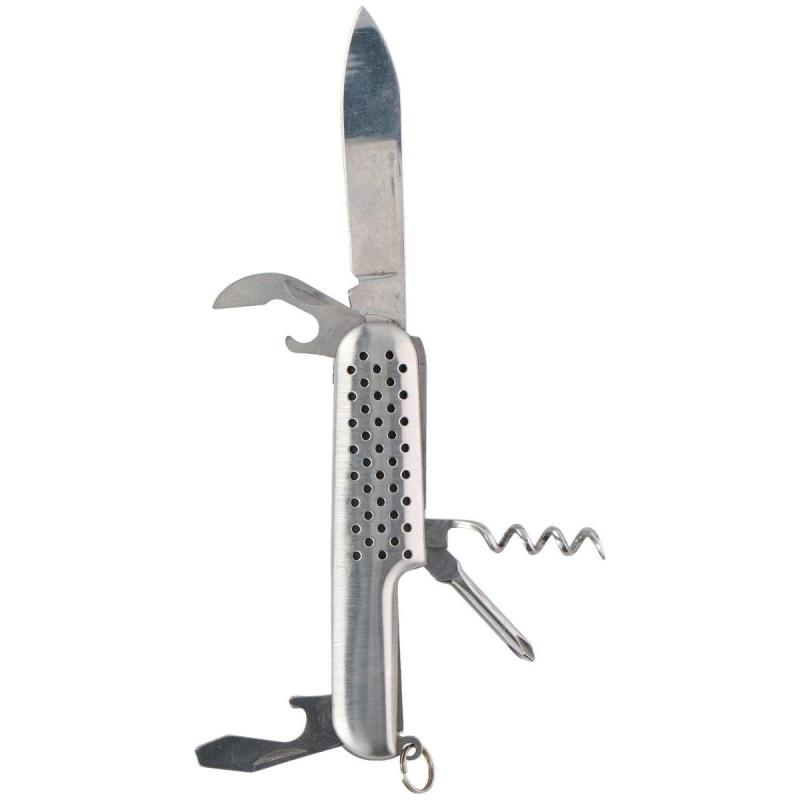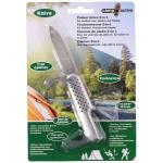 Camp Active 5-in-1 kabatas nazis ir daudzfunkcionāls un kompakts rīks, kas ideāli piemērots kempingam, pārgājieniem un ikdienas lietošanai. Tas aprīkots ar piecām praktiskām funkcijām – asu nerūsējošā tērauda asmeni, korķuviļķi, skrūvgriezi, pudeļu attaisāmo un konservu attaisāmo, nodrošinot plašu pielietojumu dažādās situācijās. Kompaktais izmērs (aptuveni 8.8 x 2.4 x 1.2 cm) ļauj to ērti pārnēsāt kabatā vai somā, savukārt izturīgais materiāls garantē ilgmūžību un uzticamību āra apstākļos un ikdienā.