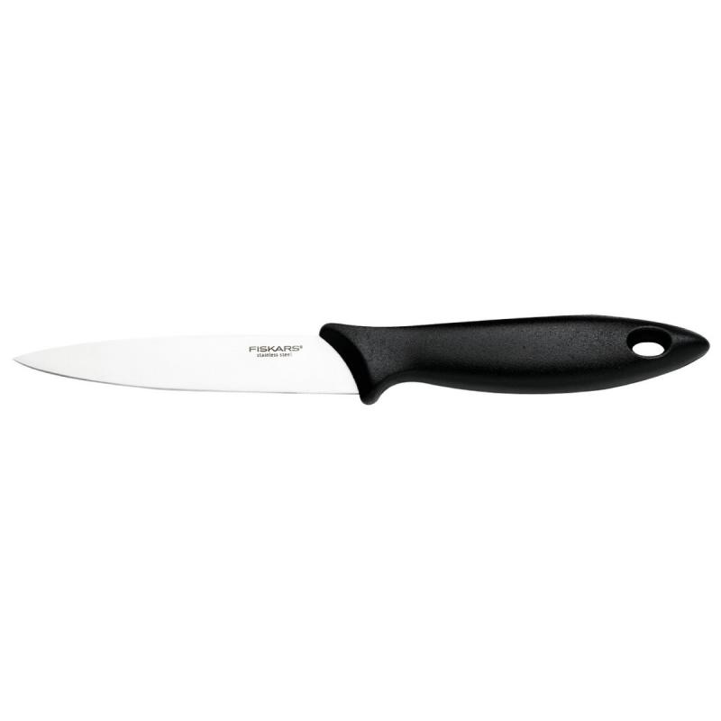 Fiskars Essential mizošanas nazis ir praktisks risinājums ikdienas virtuves darbiem, nodrošinot ērtu augļu un dārzeņu mizošanu un griešanu. Nazis ir vidēja izmēra un viegli pārvaldāms, tādēļ tas labi iederas gan mājsaimniecībās, gan profesionālajā virtuvē. Ergonomiskais melnais plastmasas rokturis ar vieglu tekstūru nodrošina drošu satvērienu un ērtu lietošanu ilgstoši. Asmens izgatavots no japāņu nerūsējošā tērauda, tā garums ir 11 cm. Var mazgāt trauku mazgājamā mašīnā.