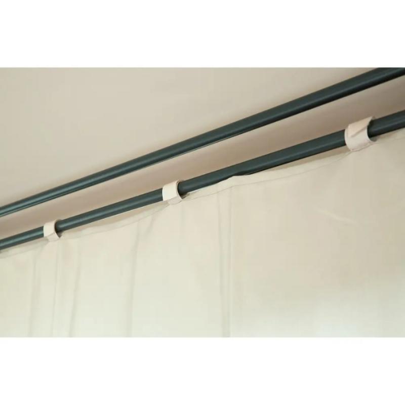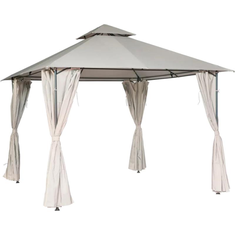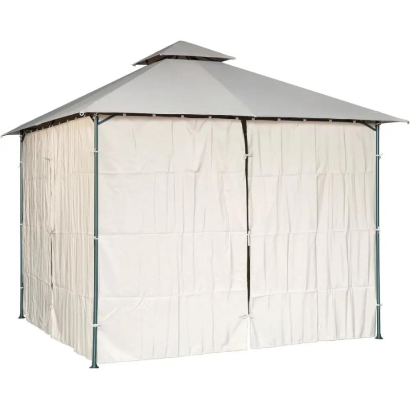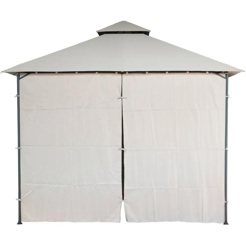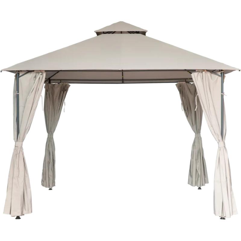 Besk nojume ir klasisks dārza paviljons ar divpakāpju jumtu un elegantām auduma sienām, kas nodrošina pilnīgu aizsardzību no saules un laikapstākļiem. Konstrukcijai ir izturīgs metāla karkass ar pulverpārklājumu un bēšs, UV izturīgs jumta pārklājs, kas efektīvi atstaro saules starus un uztur patīkamu temperatūru zem nojumes. Sānu sienas ir izgatavotas no kvalitatīva auduma bēšā krāsā un aprīkotas ar ērtām saitēm, kas ļauj tās aizvilkt vai atvērt atkarībā no vajadzības un laikapstākļiem. Nojume ir ideāla izvēle dārza atpūtas zonai, āra ēdamgaldam vai burbuļvannai, nodrošinot gan privātumu, gan aizsardzību no lietus un vēja. Nojume ir piemērota sezonālai lietošanai un viegli salocāma ziemas glabāšanai. Nojumes izmērs 3 x 3 m.