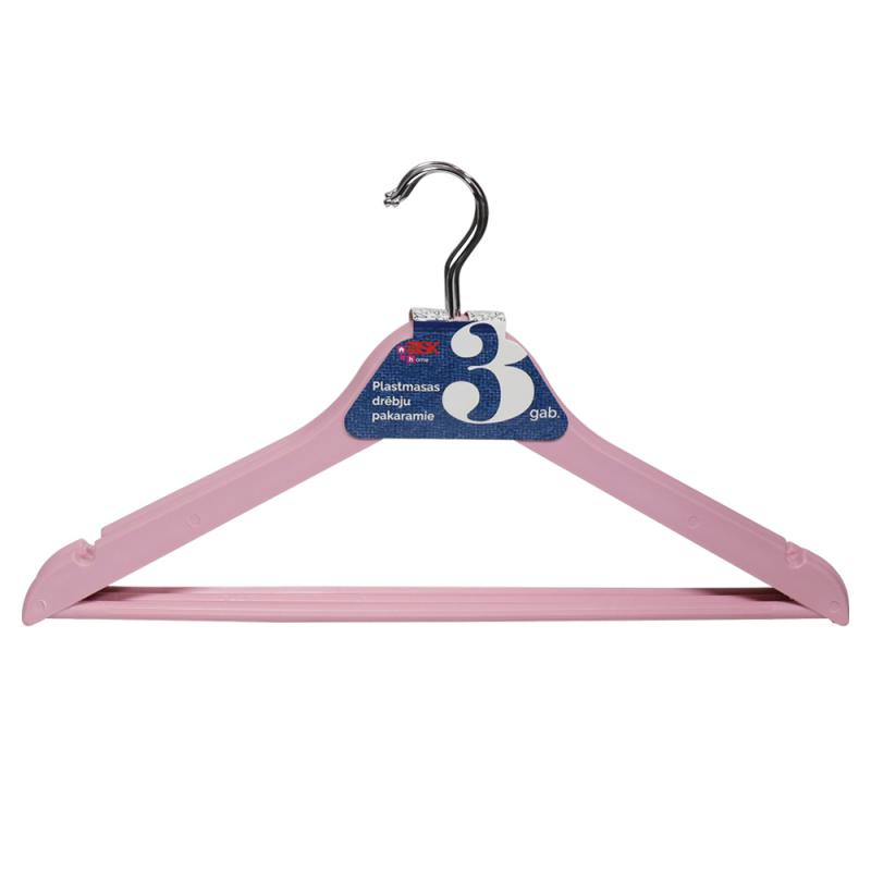 BESK plastmasas drēbju pakaramie rozā krāsā ir praktisks risinājums garderobes organizēšanai, piemēroti dažādu apģērbu uzglabāšanai. Katram pakaramajam ir izturīgs plastmasas korpuss un metāla āķis, kuru iespējams pagriezt par 360 grādiem, nodrošinot ērtu lietošanu un piekļuvi apģērbam. Klasiskais dizains un īpaši izveidotās iedobes novērš apģērbu slīdēšanu. Komplekts ietilpst trīs pakaramos.