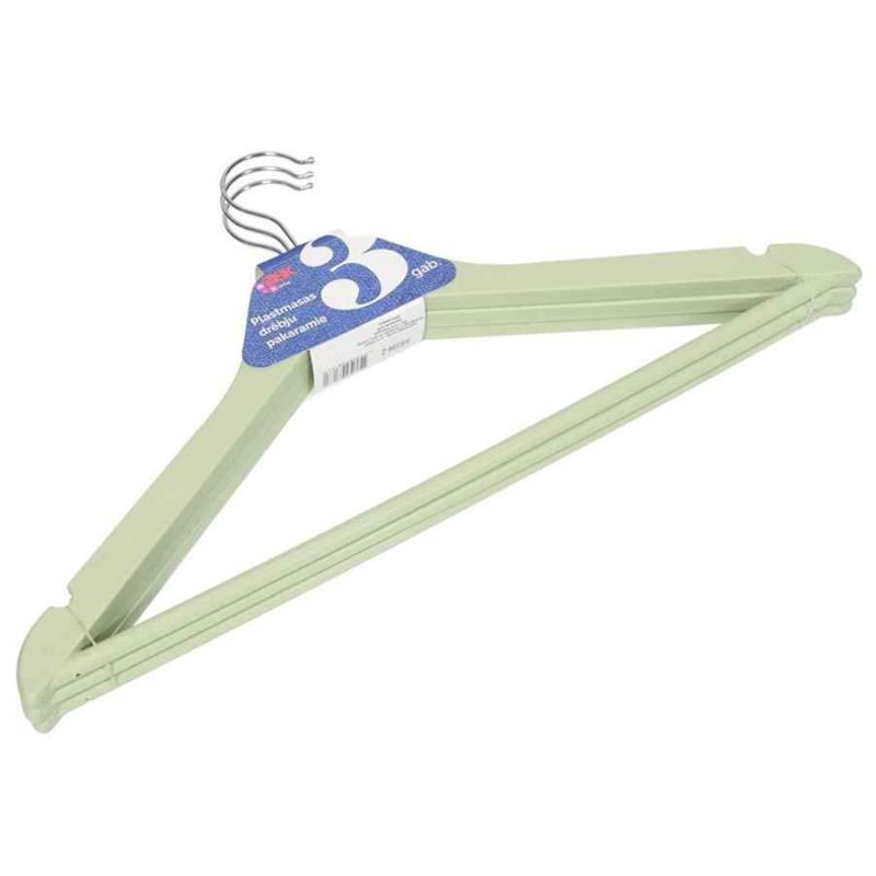 BESK plastmasas drēbju pakaramie zaļā krāsā ir praktisks risinājums garderobes organizēšanai, piemēroti dažādu apģērbu uzglabāšanai. Katram pakaramajam ir izturīgs plastmasas korpuss un metāla āķis, kuru iespējams pagriezt par 360 grādiem, nodrošinot ērtu lietošanu un piekļuvi apģērbam. Klasiskais dizains un īpaši izveidotās iedobes novērš apģērbu slīdēšanu. Komplekts ietilpst trīs pakaramos.