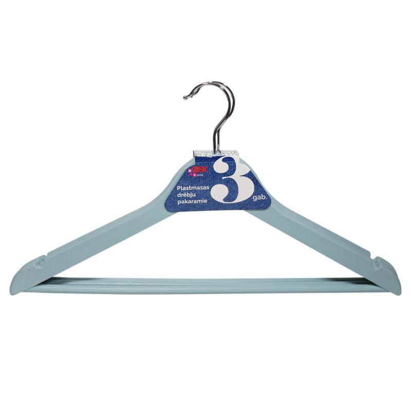 BESK plastmasas drēbju pakaramie zilā krāsā ir praktisks risinājums garderobes organizēšanai, piemēroti dažādu apģērbu uzglabāšanai. Katram pakaramajam ir izturīgs plastmasas korpuss un metāla āķis, kuru iespējams pagriezt par 360 grādiem, nodrošinot ērtu lietošanu un piekļuvi apģērbam. Klasiskais dizains un īpaši izveidotās iedobes novērš apģērbu slīdēšanu. Komplekts ietilpst trīs pakaramos.