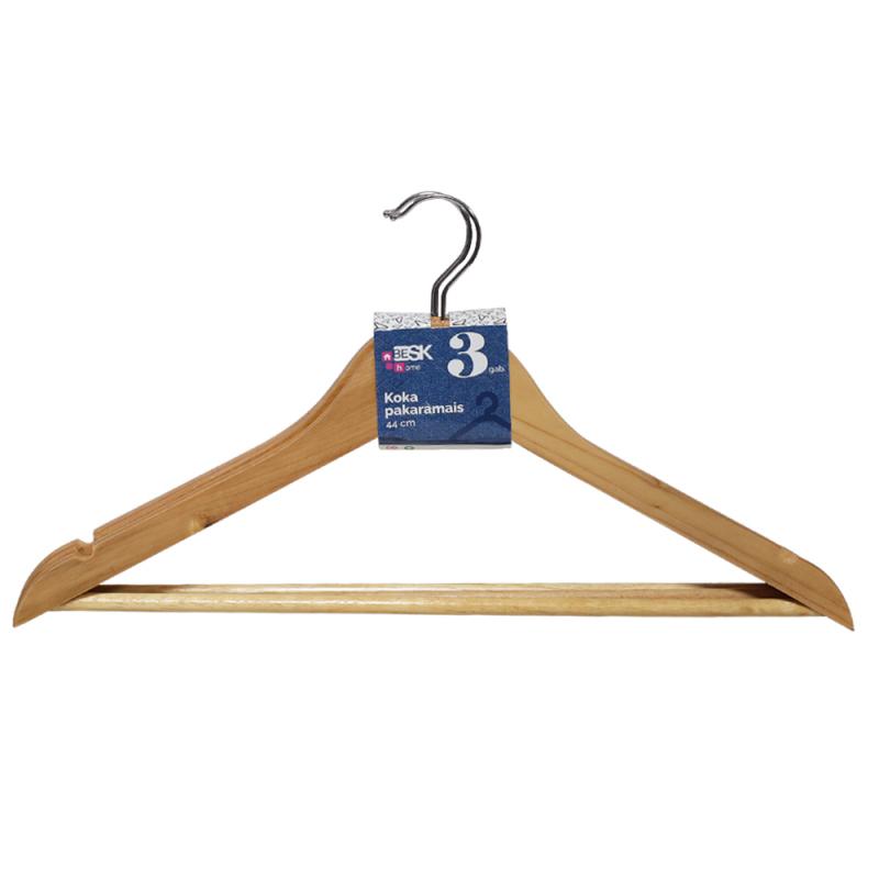 BESK koka pakaramais ar metāla āķi ir elegants un izturīgs risinājums apģērbu uzglabāšanai garderobē. Pakaramais izgatavots no kvalitatīva koka, kas nodrošina stabilitāti un palīdz saglabāt apģērba formu. Metāla āķi iespējams pagriezt par 360 grādiem, kas ļauj ērti novietot pakaramo jebkurā virzienā skapī. Klasiskais dizains un praktiskās iedobes novērš apģērba noslīdēšanu. Komplektā 3 gb.