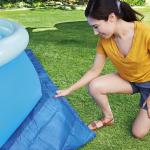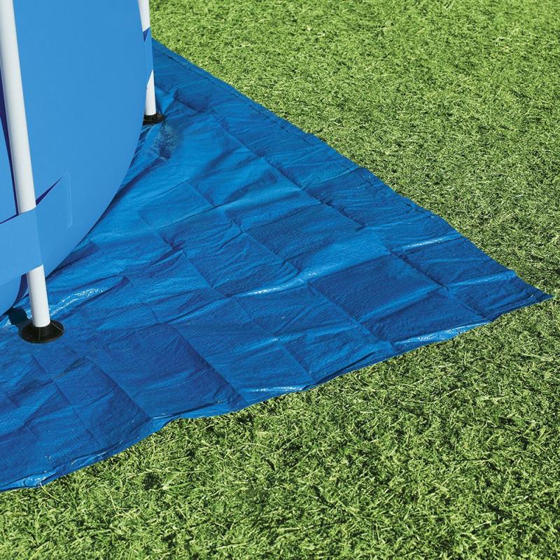 Bestway® PE baseina paklājs ir izstrādāts, lai nodrošinātu papildu aizsardzību baseinam. Šis zilās krāsas, kvadrātveida paklājs ir piemērots baseiniem ar diametru līdz 305 cm. Pasargā baseina apakšu no nodiluma, caurduršanas un citiem bojājumiem, ko var radīt asas virsmas vai gružu daļiņas. Samazina netīrumu, smilšu un citu gružu iekļūšanu baseinā, atvieglojot tā tīrīšanu un uzturēšanu. Nodrošina papildu siltumizolāciju, palīdzot uzturēt ūdens temperatūru ilgāku laiku. Vienkārši izklājiet paklāju uz līdzenas virsmas un novietojiet uz tā baseinu. Izmērs 335 x 335 cm.