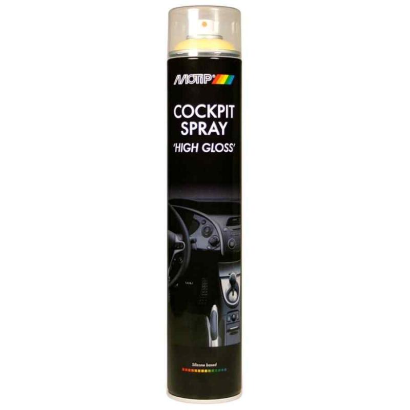 Viegli notīriet savas automašīnas priekšējo paneli ar Motip Cockpitspray High Gloss. Līdzeklis aizsargā automašīnas paneli un citas automašīnas plastmasas daļas un atstāj patīkamu vaniļas smaržu. Līdzeklis ir netīrumus atgrūdošs un antistatisks, kā arī nodrošina noturīgu spīdumu. Labākā apstrādes temperatūra no 5 līdz 30°C. Pirms lietošanas aerosolu sakratiet. Uzklājiet līdzekli uz sausas, tīras drānas un vienmērīgi izplatiet pa apstrādājamo virsmu. Pēc tam nopulējiet ar sausu drānu. Ņemot vērā samazināto saķeri, izvairieties no līdzekļa saskares ar stūri un vadības pedāļiem. Tilpums 750 ml.