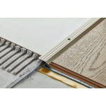 Pārejas profils tiek izmantots vienmērīgai un drošai pārejai starp dažādām grīdas virsmām, īpaši, ja starp tām ir augstuma atšķirības. Tā rievotā virsma rada pretslīdes aizsardzību. Profilu var piestiprināt, izmantojot skrūves. Izgatavots no alumīnija. Krāsa - bēša. Izmērs (G x P x A) 900 x 30 x 5 mm.