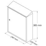 Brūna pastkastīte, izmērs (G x P x A) 290 x 100 x 385 mm. Komplektā 2 atslēgas. Pastkastīte ne tikai nodrošina korespondences drošību, bet arī izdaiļo mājas fasādi, sētu, kāpņu telpu vai biroju. Lieliski piemērota lietošanai gan ārā, gan iekštelpās. Izgatavota no cinkota skārda, pulverkrāsota. Ir vieta, kur ierakstīt numuru, vārdu un uzvārdu.
